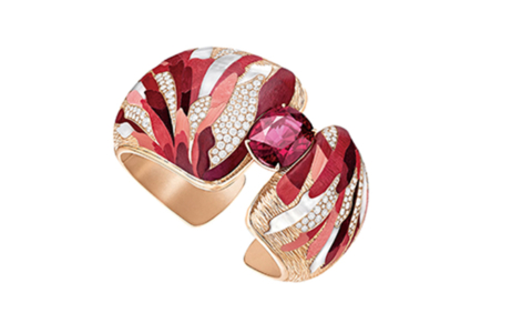 For truly show-stopping creations, haute joaillerie aficionados are absolutely spoilt for choice. To start, there’s De Beers’ desert dune-inspired Namib Wonder cuff, with its dual-tone yellow and white diamond layers fringed with dangling white rough diamonds that swish to and fro.